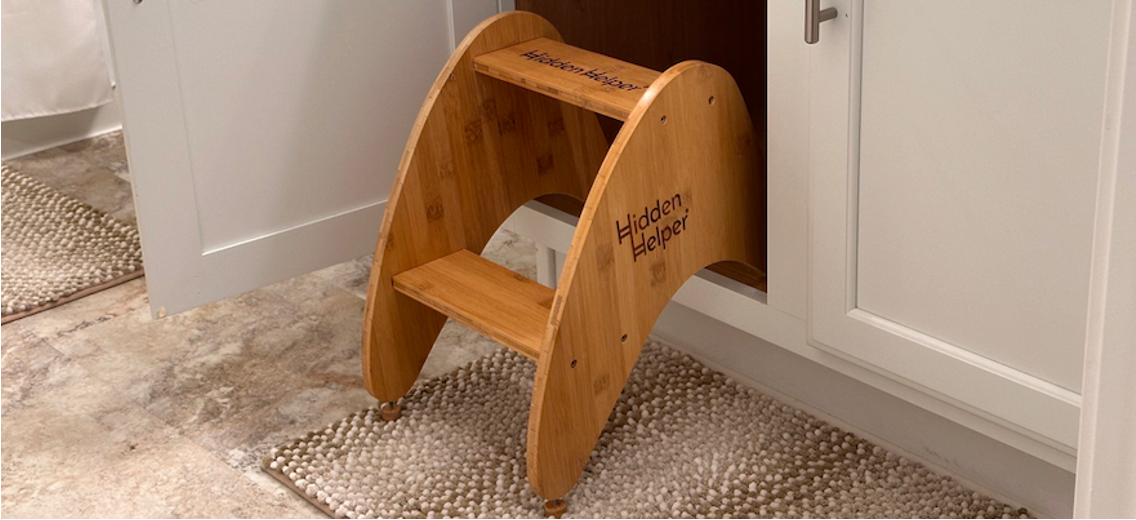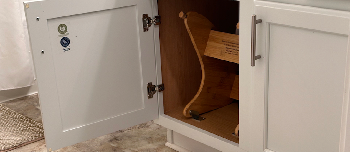 Our design allows you to stow the Hidden Helper under standard vanities & cabinets with a stowed depth of only 11.5 inches!
