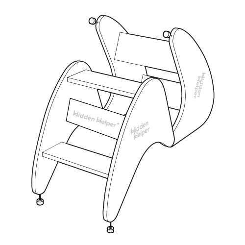 Place the stool into the cabinet and adjust the feet as necessary to assure that the steps are level. Lay stool on its back and check that the vanity or cabinet doors can close.